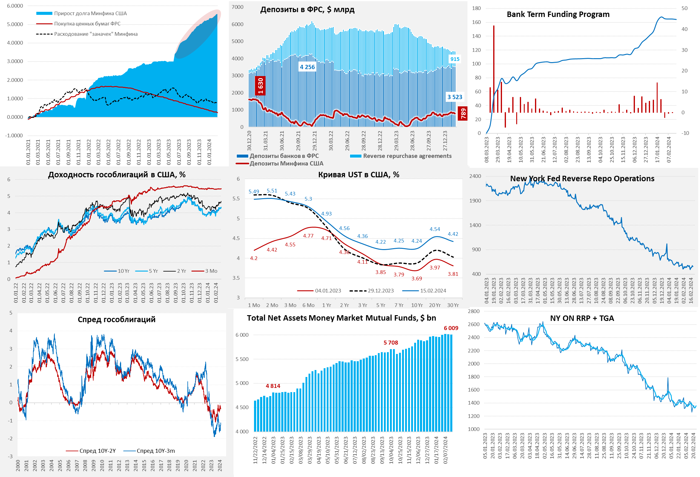 Пока в целом ожидания подтверждаются – сокращение RRP застопорилось, а длинный хвост кривой госдолга потихоньку поехал вверх.